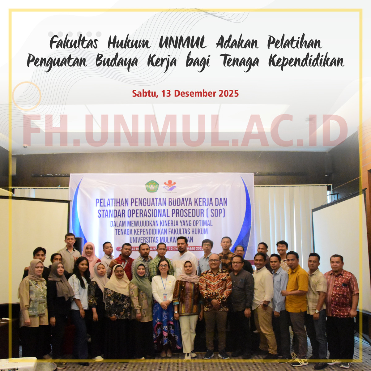 Fakultas Hukum Universitas Mulawarman (Unmul) menyelenggarakan Pelatihan Penguatan Budaya Kerja b...