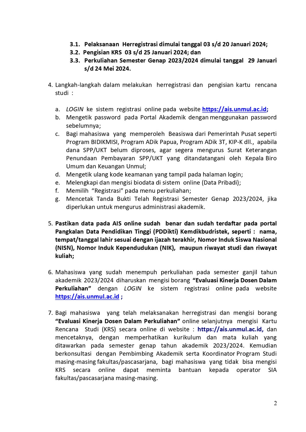 Foto 2: Prosedur Operasi Standar (POS) Registrasi/herregistrasi dan Pengisian KRS Semester Genap T.A. 2023/2024 - Page 2