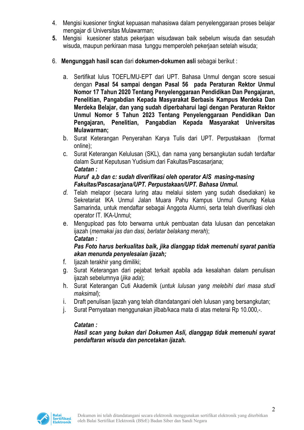 Foto 2: Surat Prosedur Operasi Standar (POS) Wisuda dan Penulisan Ijazah Online Tahun 2025 Universitas Mulawarman - Page 2