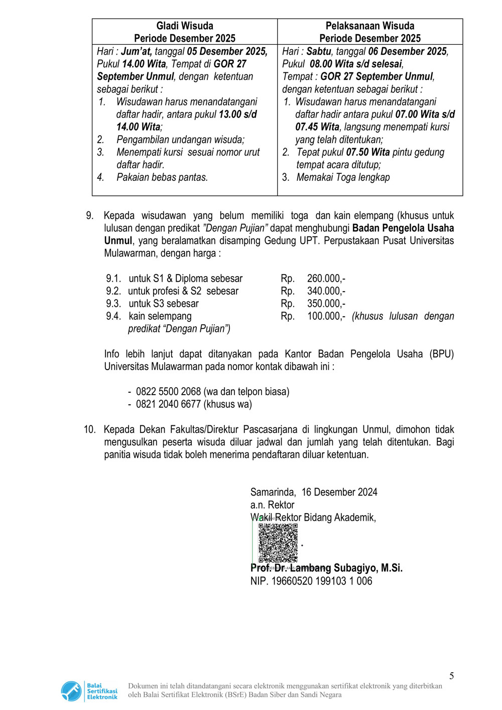 Foto 5: Surat Prosedur Operasi Standar (POS) Wisuda dan Penulisan Ijazah Online Tahun 2025 Universitas Mulawarman - Page 5