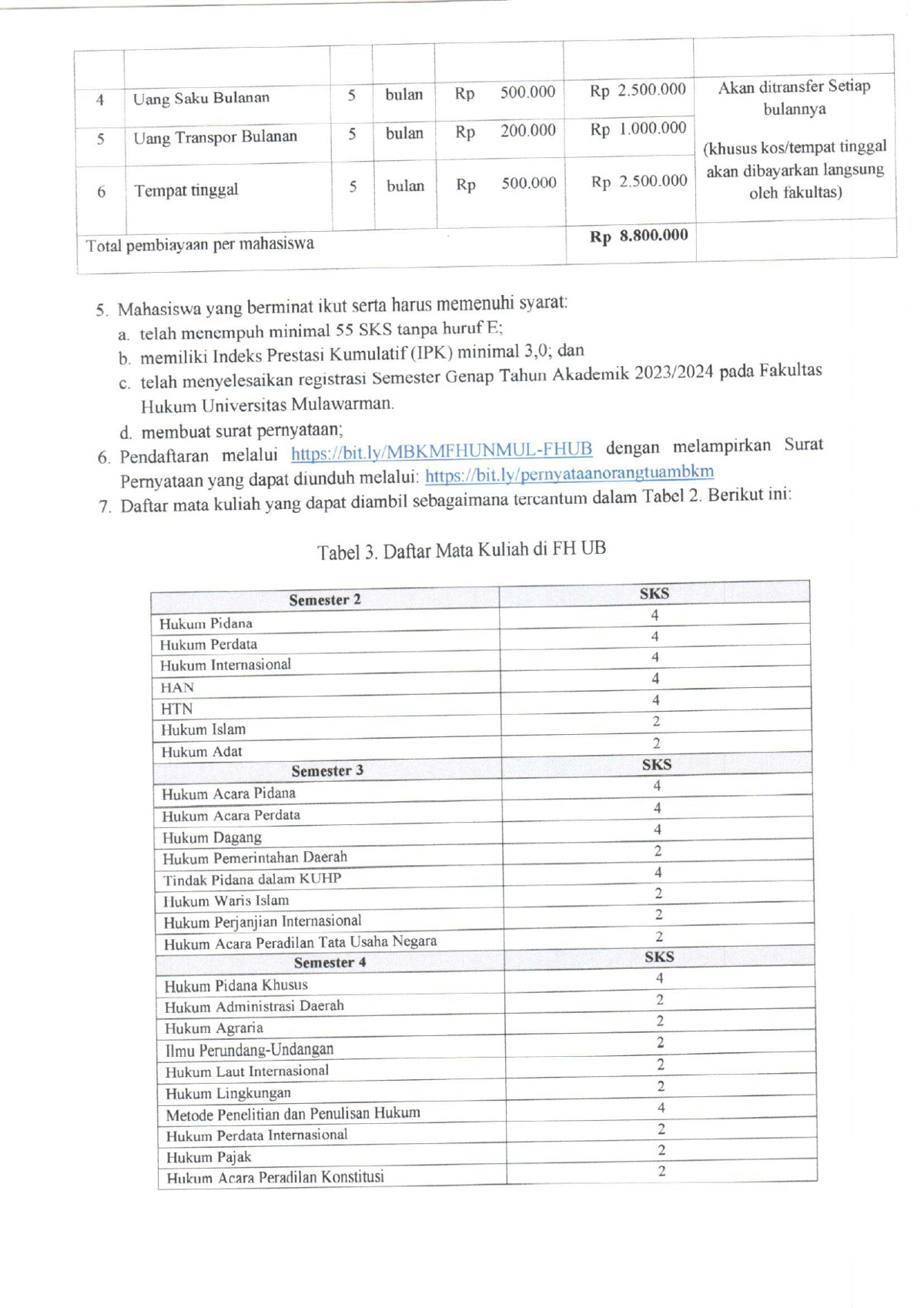 Foto 3: Pengumuman Program Pertukaran Mahasiswa MBKM Fakultas Hukum Universitas Brawijaya (FH UB) Malang Semester Genap TA 2023/2024 - Page 3
