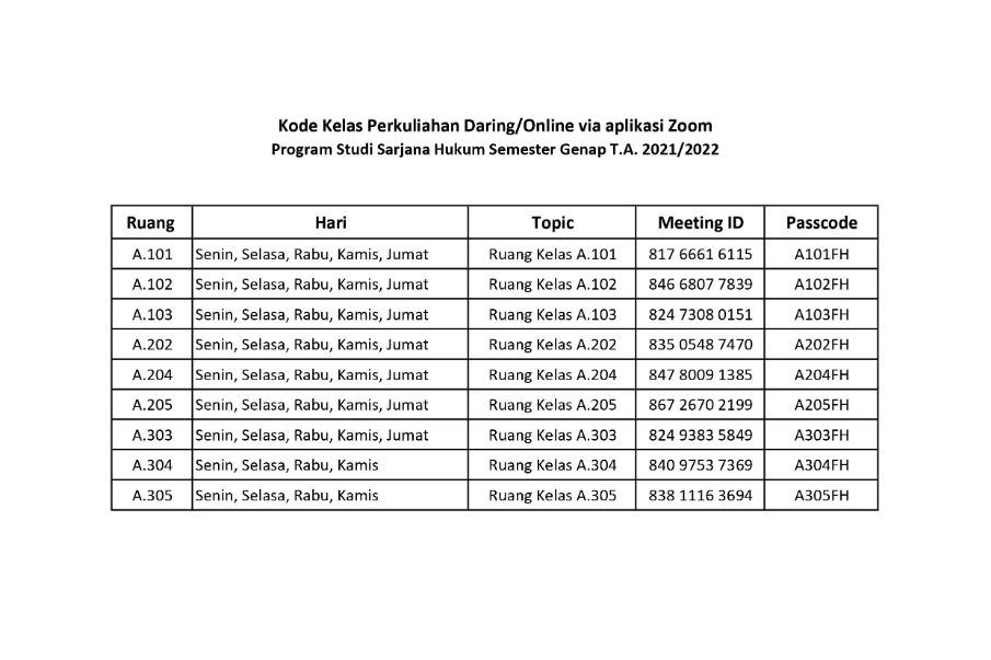 Foto 4: Daftar Kode Kelas Daring menggunakan Zoom Meeting pada Perkuliahan Semester Genap T.A. 2021/2022 FH UNMUL - Page 1