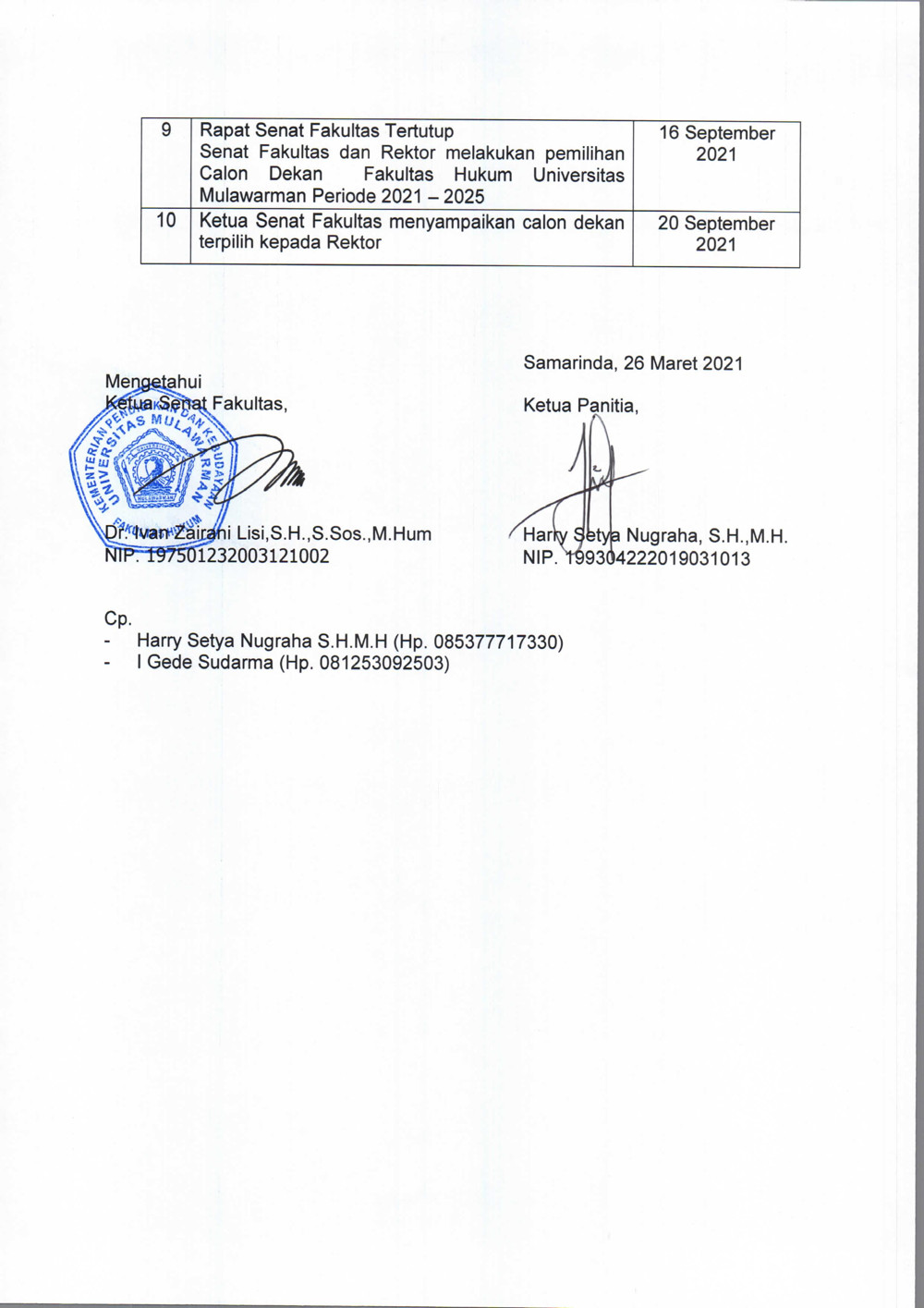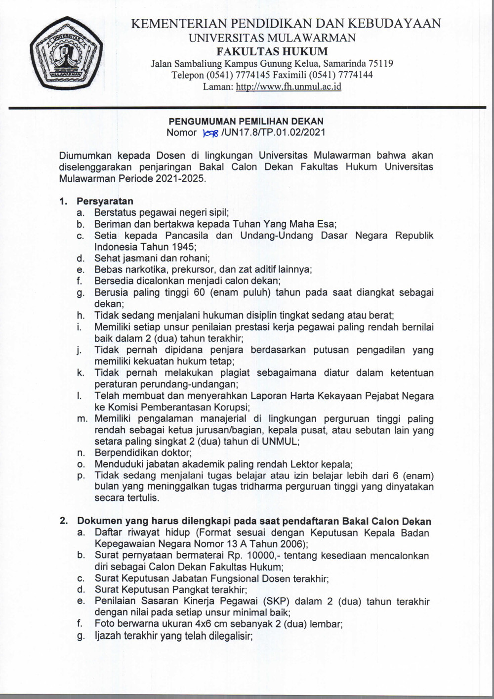 Foto 2: Surat Pengumuman Pemilihan Dekan Fakultas Hukum Unmul - Page 2