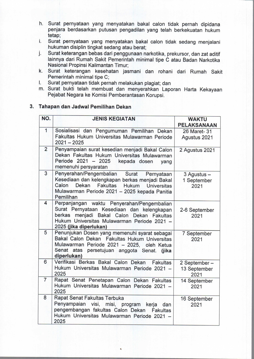 Foto 3: Surat Pengumuman Pemilihan Dekan Fakultas Hukum Unmul - Page 3
