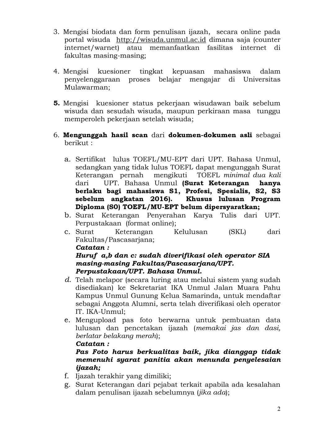 Foto 3: Surat Prosedur Operasi Standar (POS) Wisuda dan Penulisan Ijazah Online bulan Juni 2021 Universitas Mulawarman - Page 2