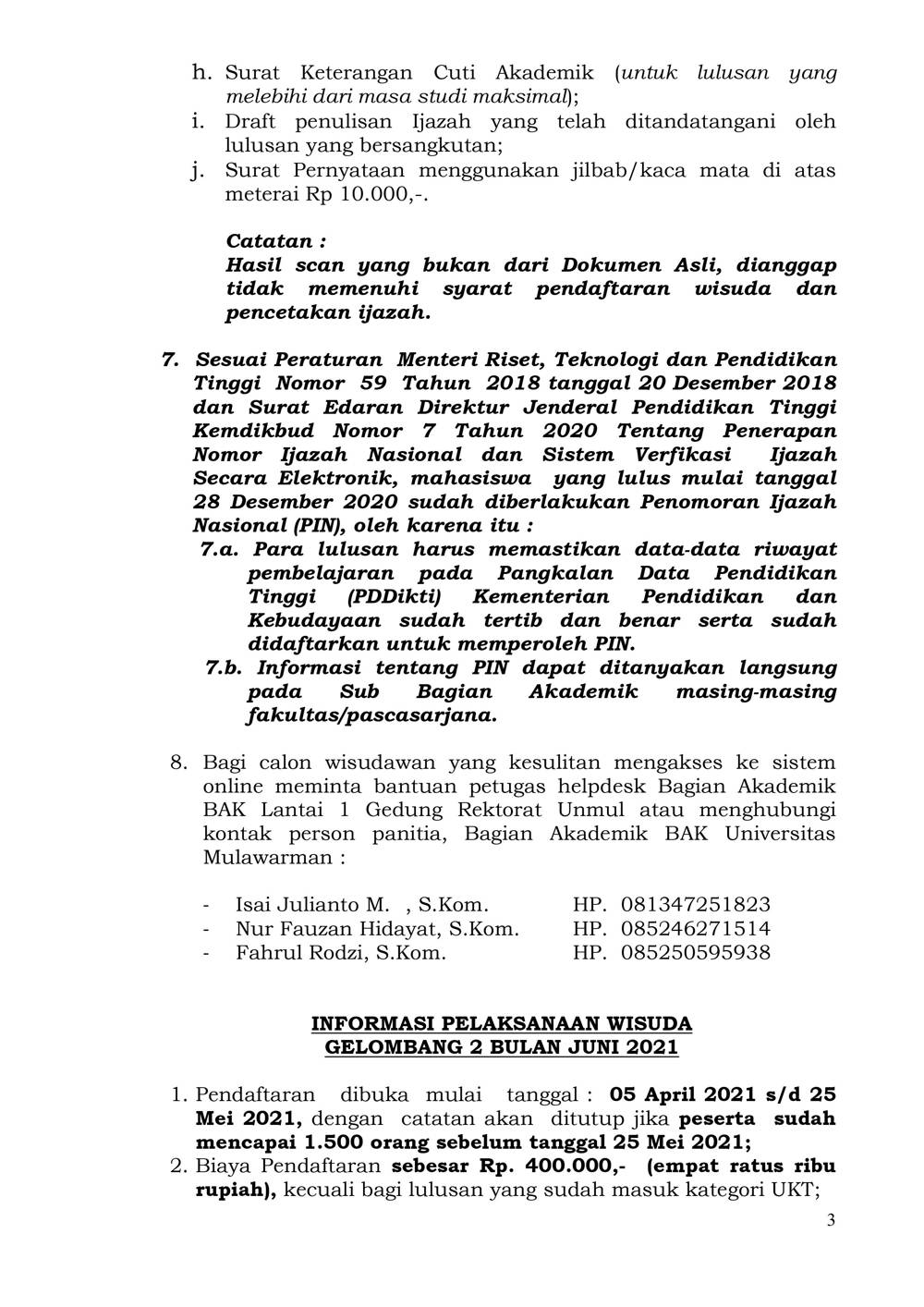 Foto 4: Surat Prosedur Operasi Standar (POS) Wisuda dan Penulisan Ijazah Online bulan Juni 2021 Universitas Mulawarman - Page 3