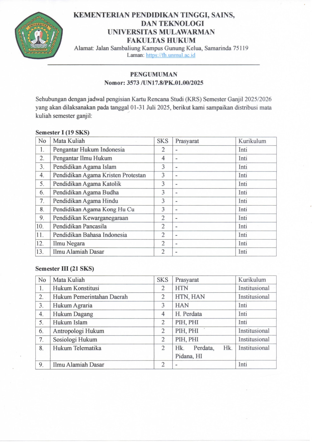 Foto 3: Pengumuman Distribusi Mata Kuliah Semester Ganjil TA 2025/2026 - Page 3