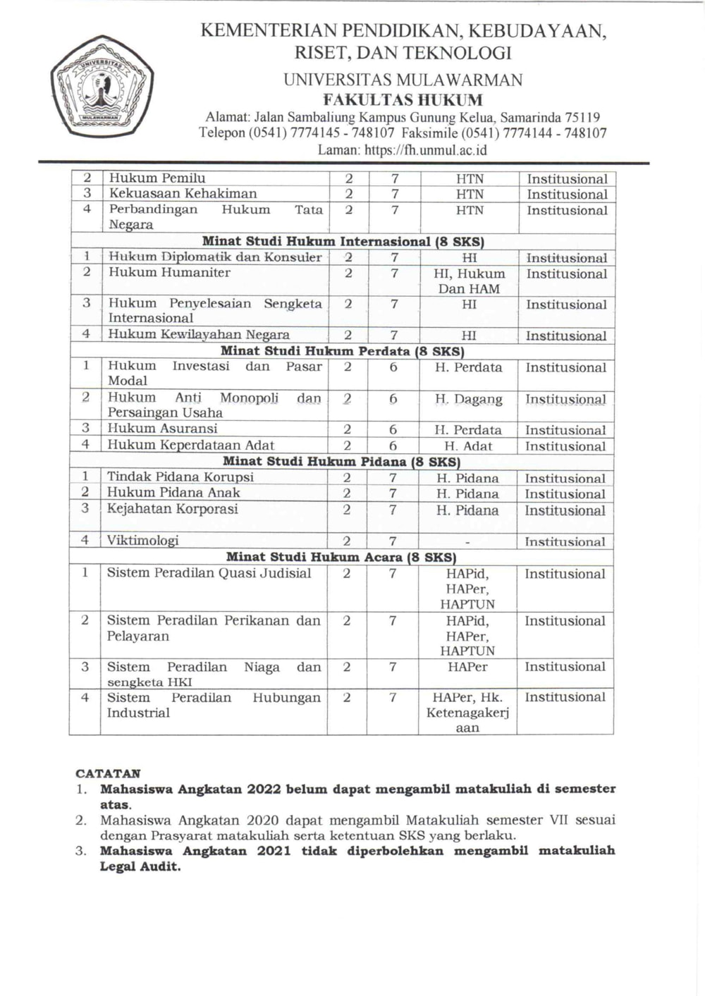 Foto 3: Lampiran Softcopy Surat Pengumuman Nomor: 3395/UN17.8/KR.00/2022 tentang Distribusi Mata Kuliah Semester Ganjil T.A. 2022/2023 Prodi Sarjana Hukum - Page 3