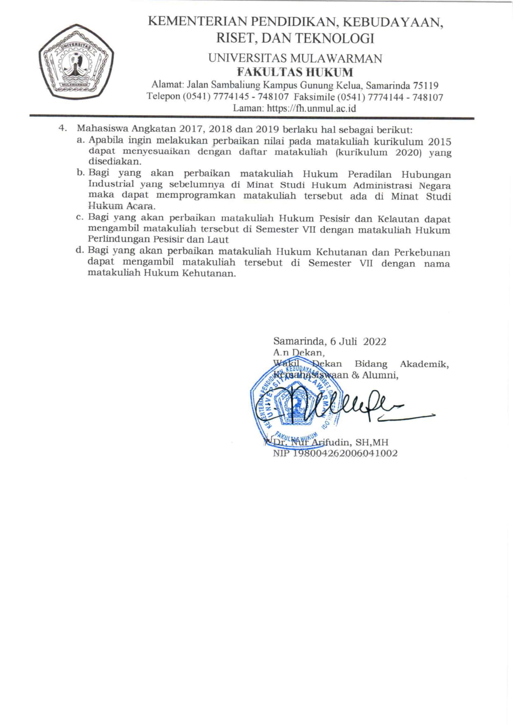 Foto 4: Lampiran Softcopy Surat Pengumuman Nomor: 3395/UN17.8/KR.00/2022 tentang Distribusi Mata Kuliah Semester Ganjil T.A. 2022/2023 Prodi Sarjana Hukum - Page 4