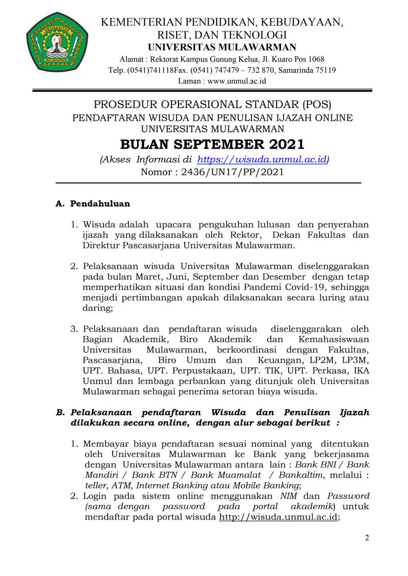 Foto 3: Surat Prosedur Operasi Standar (POS) Wisuda dan Penulisan Ijazah Online bulan September 2021 Universitas Mulawarman - Page 2