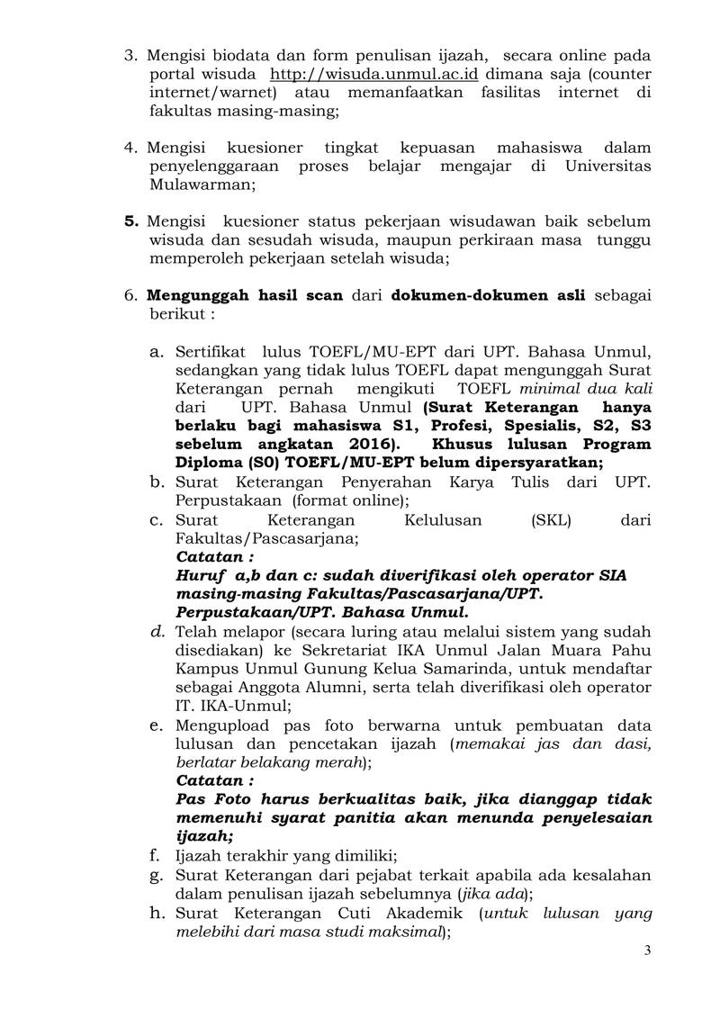 Foto 4: Surat Prosedur Operasi Standar (POS) Wisuda dan Penulisan Ijazah Online bulan September 2021 Universitas Mulawarman - Page 3