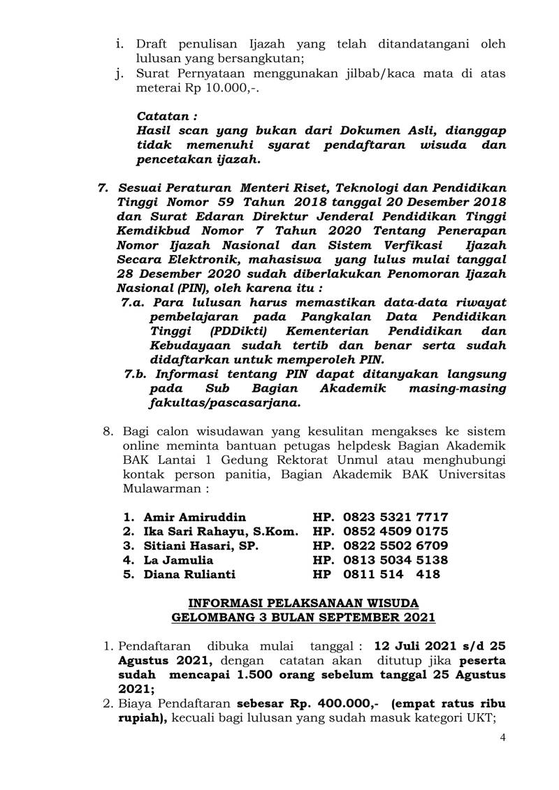 Foto 5: Surat Prosedur Operasi Standar (POS) Wisuda dan Penulisan Ijazah Online bulan September 2021 Universitas Mulawarman - Page 4