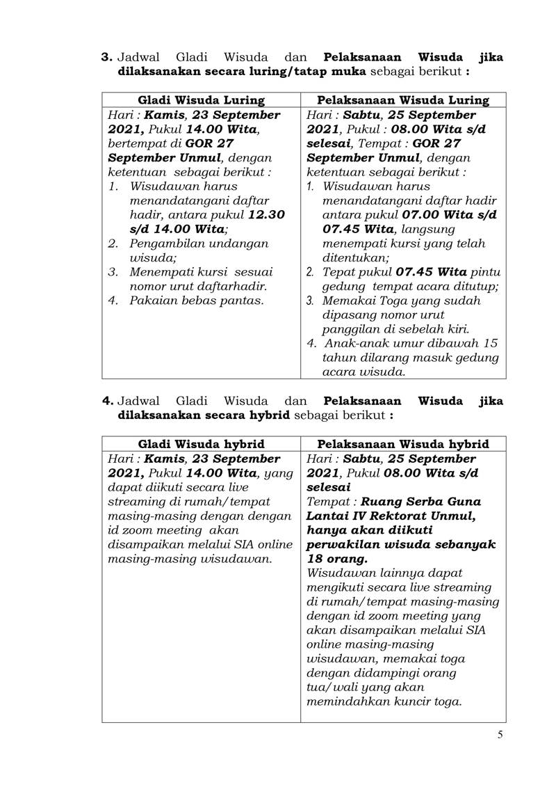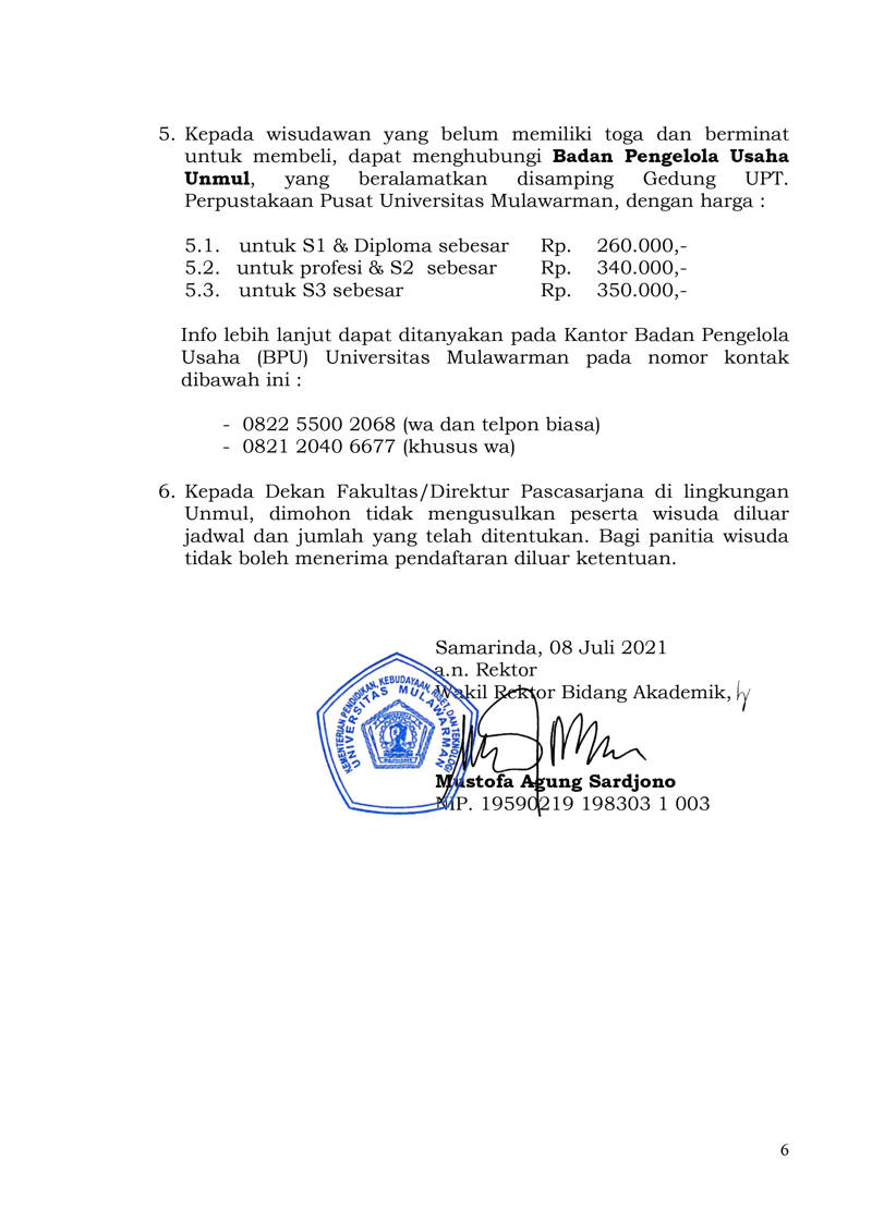 Foto 6: Surat Prosedur Operasi Standar (POS) Wisuda dan Penulisan Ijazah Online bulan September 2021 Universitas Mulawarman - Page 5