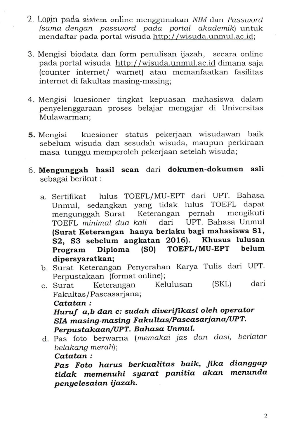 Foto 3: Lampiran Prosedur Operasi Standar (POS) Wisuda dan Penulisan Ijazah Online bulan Maret 2020 Universitas Mulawarman - Page 2