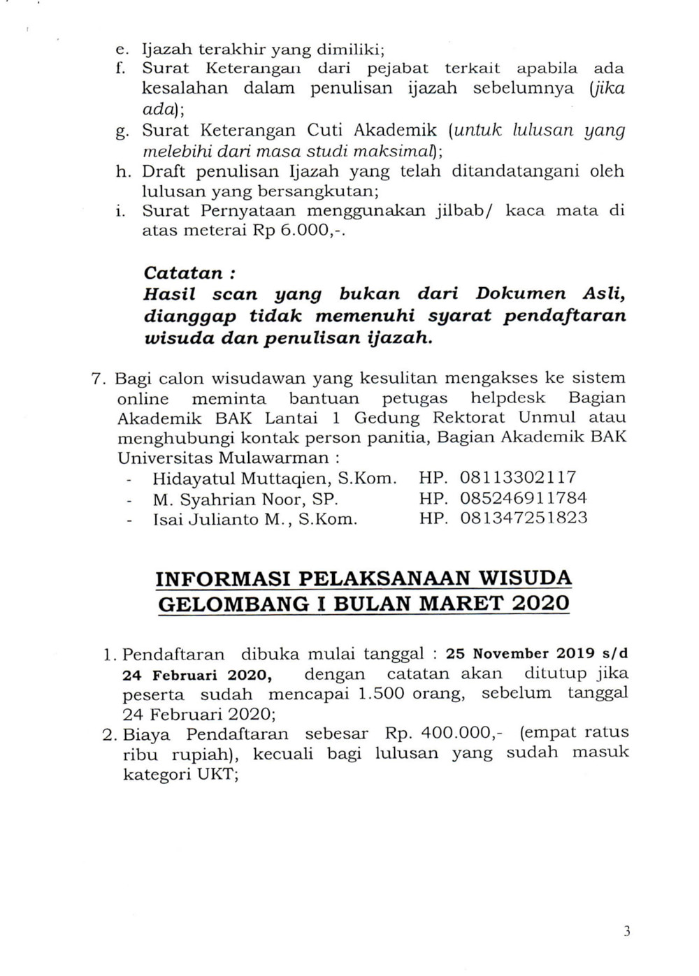 Foto 4: Lampiran Prosedur Operasi Standar (POS) Wisuda dan Penulisan Ijazah Online bulan Maret 2020 Universitas Mulawarman - Page 3