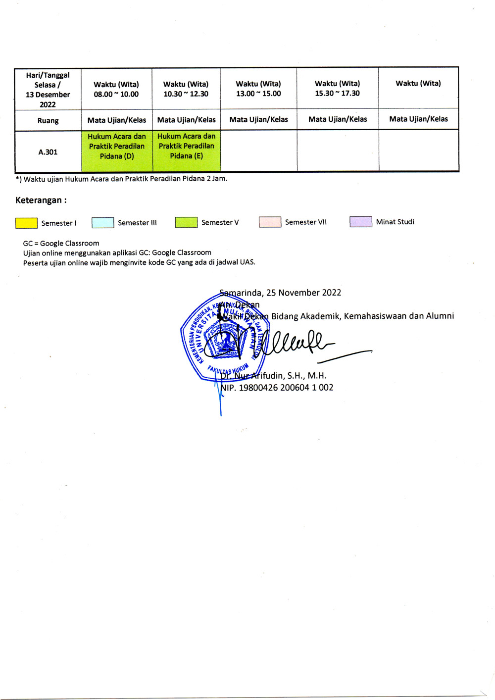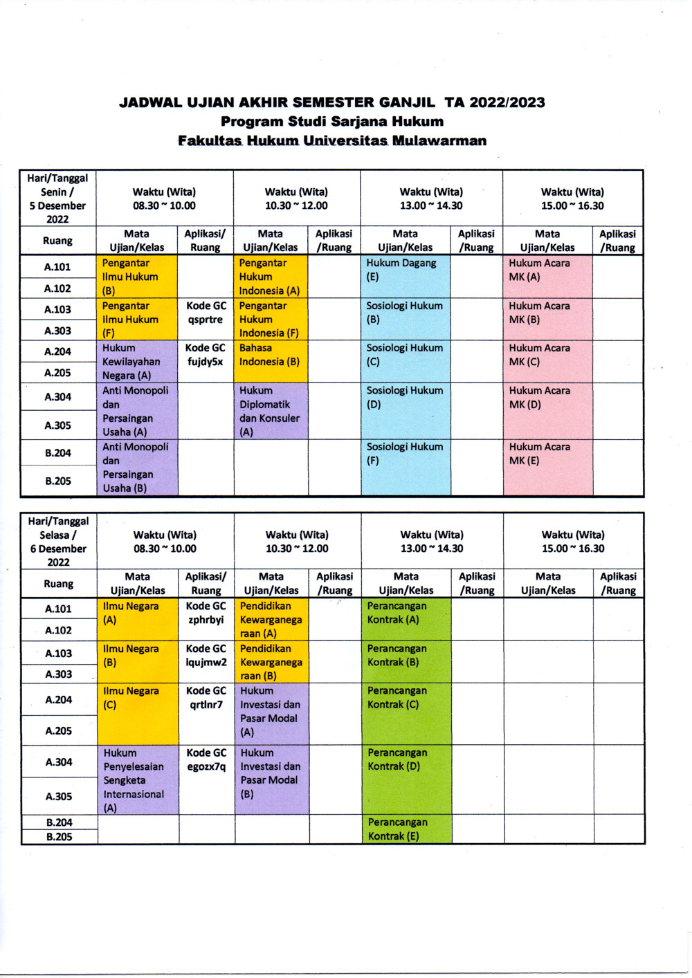 Berikut kami informasikan Jadwal Ujian Akhir Semester Ganjil Tahun Akademik 2022/2023 Program Studi Sarjana Hukum Fakultas Hukum Universitas Mulawarman.