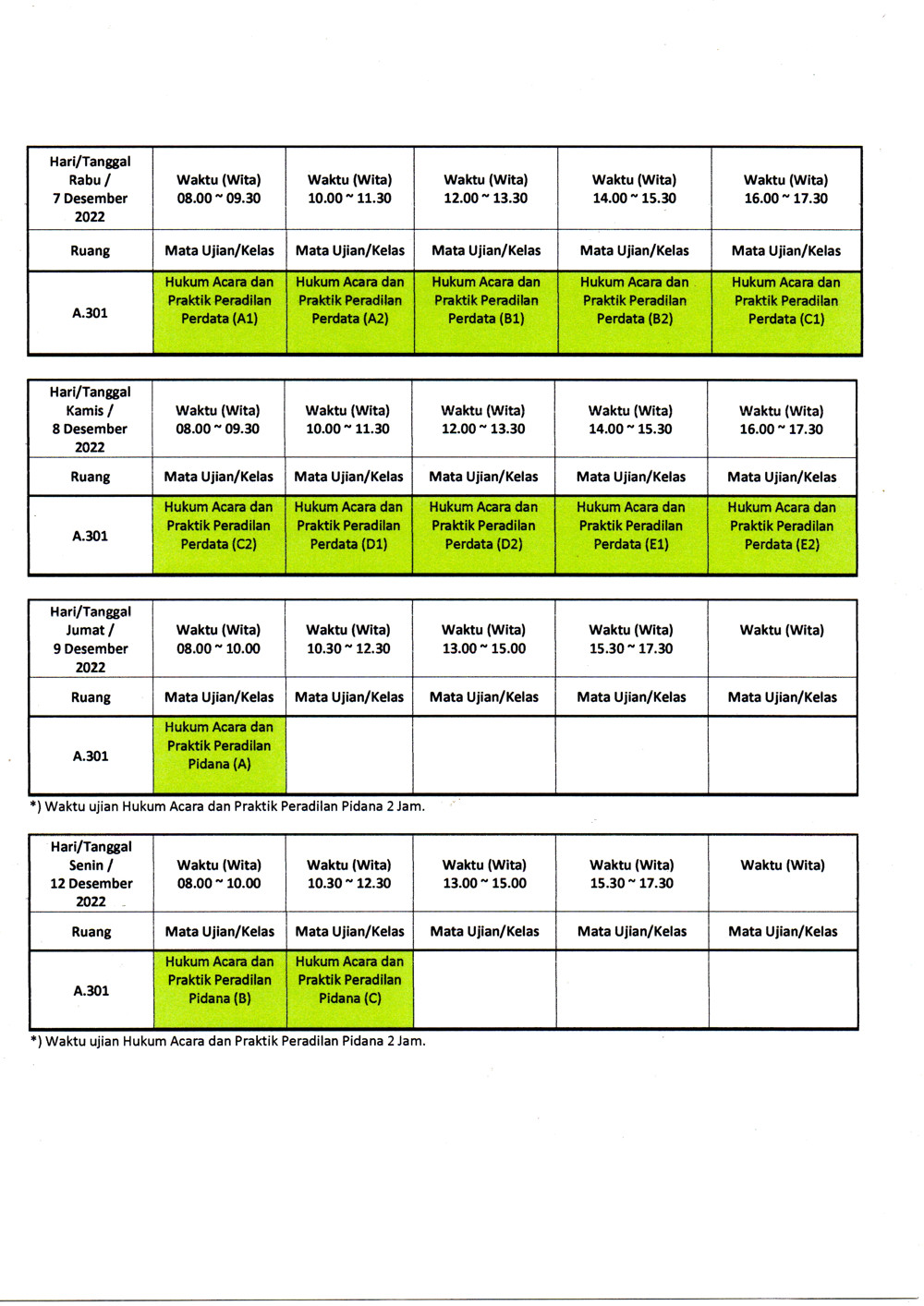 Detail jadwal ujian terlampir - 3 Lembar.