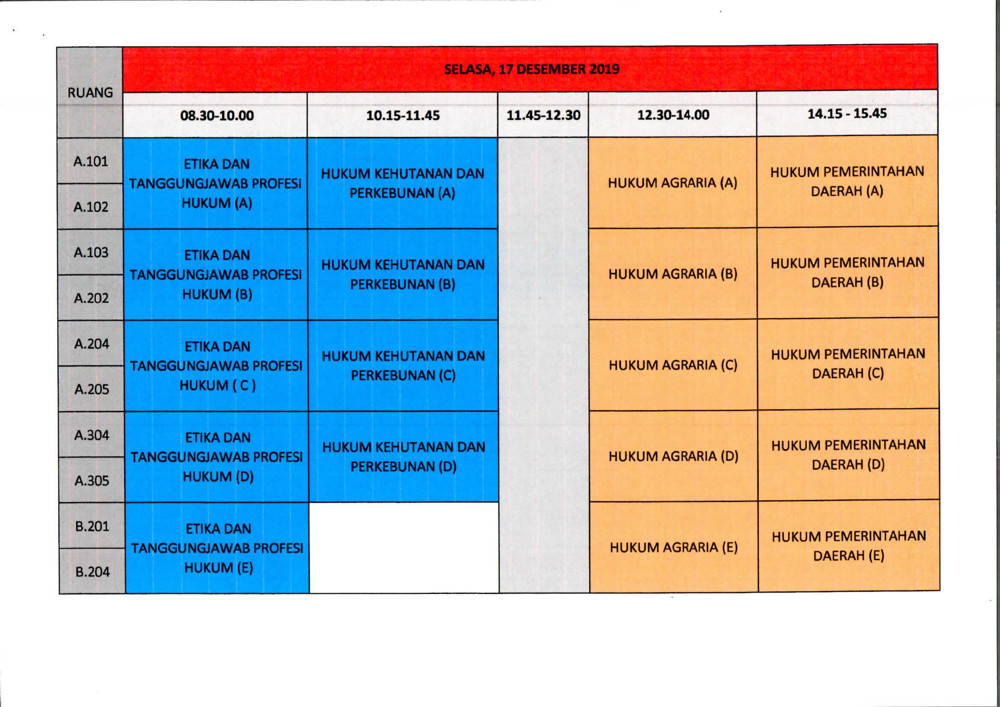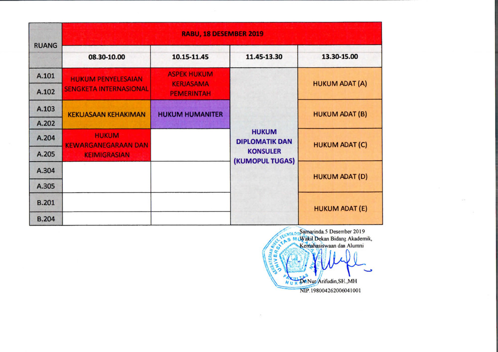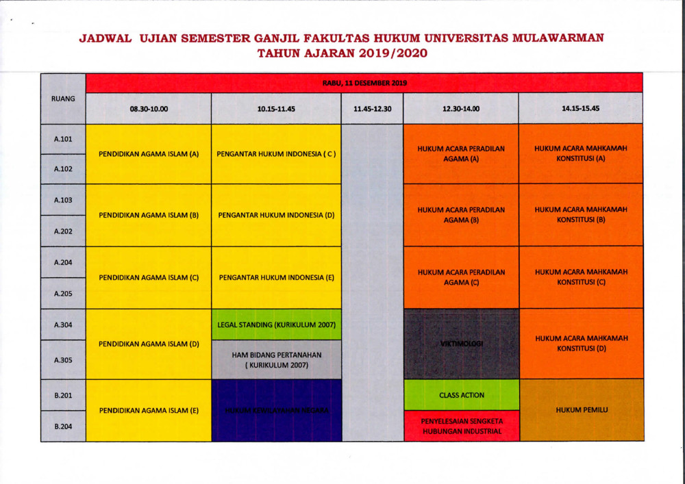 Berikut kami informasikan Jadwal Ujian Akhir Semester Ganjil Tahun Ajaran 2019/2020 Fakultas Hukum Universitas Mulawarman.