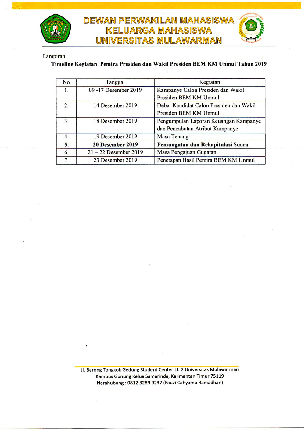 Foto 2: Lampiran Jadwal/Timeline Kegiatan Pemira Presiden dan Wakil Presiden BEM KM UNMUL tahun 2019