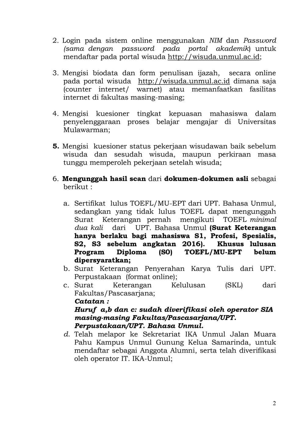Foto 3: Surat Prosedur Operasi Standar (POS) Wisuda dan Penulisan Ijazah Online bulan Maret 2021 Universitas Mulawarman - Page 2