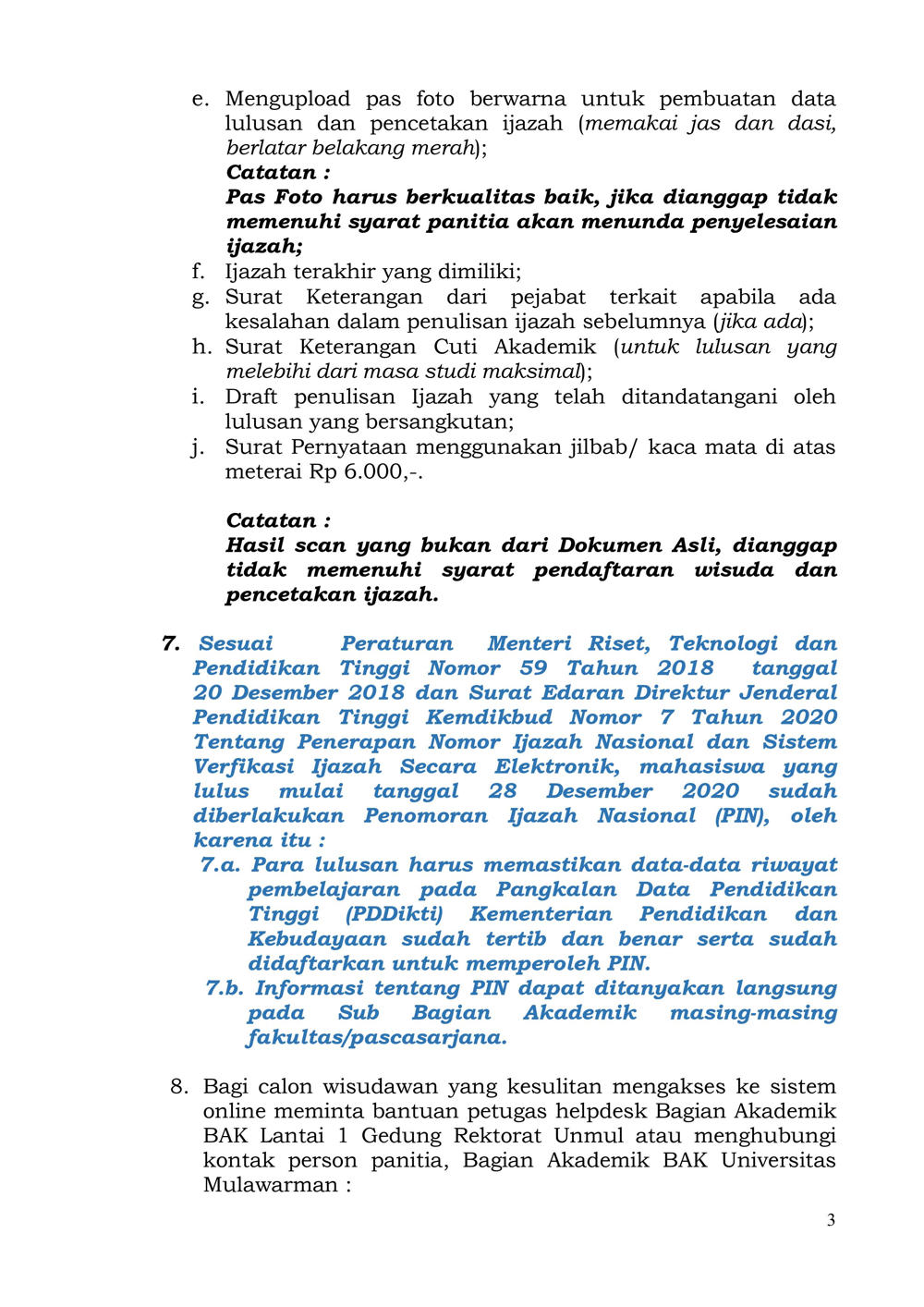 Foto 4: Surat Prosedur Operasi Standar (POS) Wisuda dan Penulisan Ijazah Online bulan Maret 2021 Universitas Mulawarman - Page 3