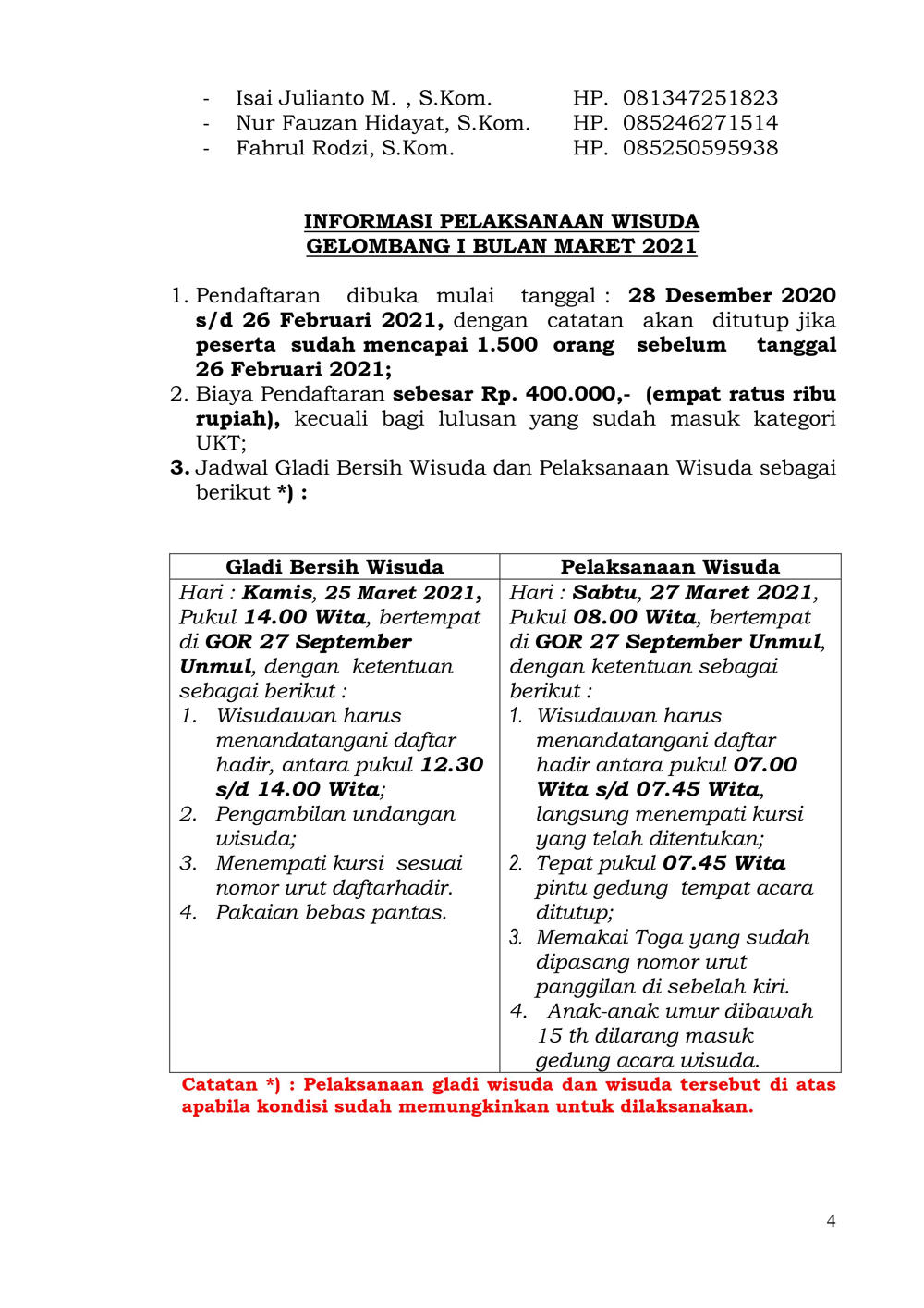 Foto 5: Surat Prosedur Operasi Standar (POS) Wisuda dan Penulisan Ijazah Online bulan Maret 2021 Universitas Mulawarman - Page 4