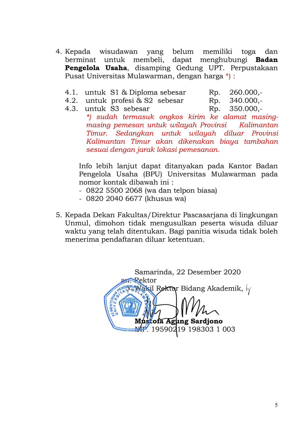 Foto 6: Surat Prosedur Operasi Standar (POS) Wisuda dan Penulisan Ijazah Online bulan Maret 2021 Universitas Mulawarman - Page 5