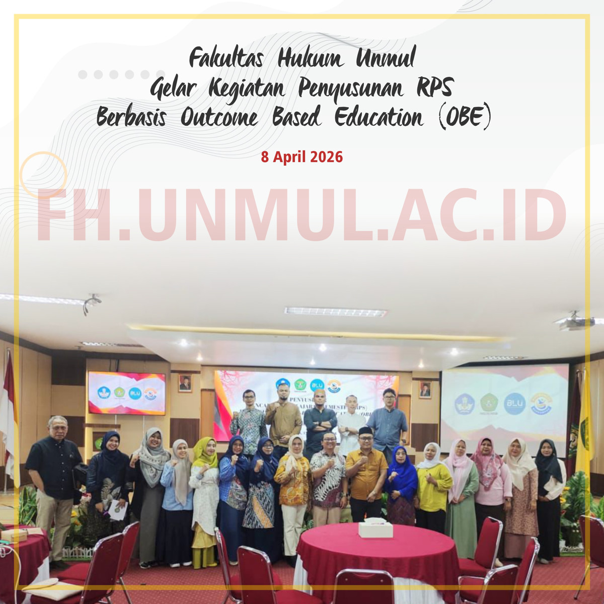 Fakultas Hukum Universitas Mulawarman (FH Unmul) menyelenggarakan kegiatan Penyusunan Rencana Pembelajaran Semester (RPS) Berbasis Outcome-Based Education (OBE) pada Jumat, 13 Februari 2026 di Aula Fakultas Hukum Universitas Mulawarman, Samarinda. Kegiatan ini diikuti oleh seluruh dosen Fakultas Hukum sebagai bagian dari upaya peningkatan kualitas pembelajaran dan penguatan implementasi kurikulum berbasis capaian pembelajaran.