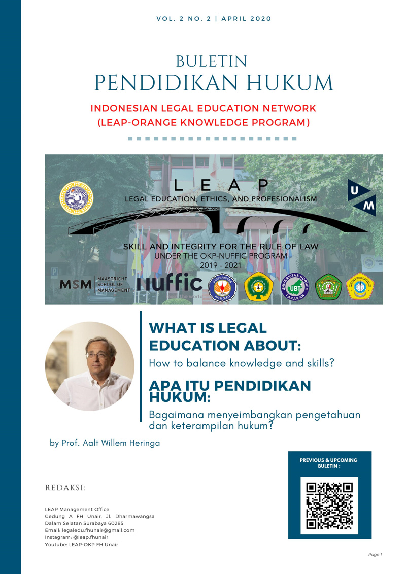 Buletin Pendidikan Hukum Indonesian Legal Education Network (Vol.2.No.2 April 2020). What is legal education about: How to balance knowledge and skills? | Apa itu pendidikan hukum: Bagaimana menyeimbangkan pengetahuan dan keterampilan hukum? By Prof. Aalt Willem Heringa.