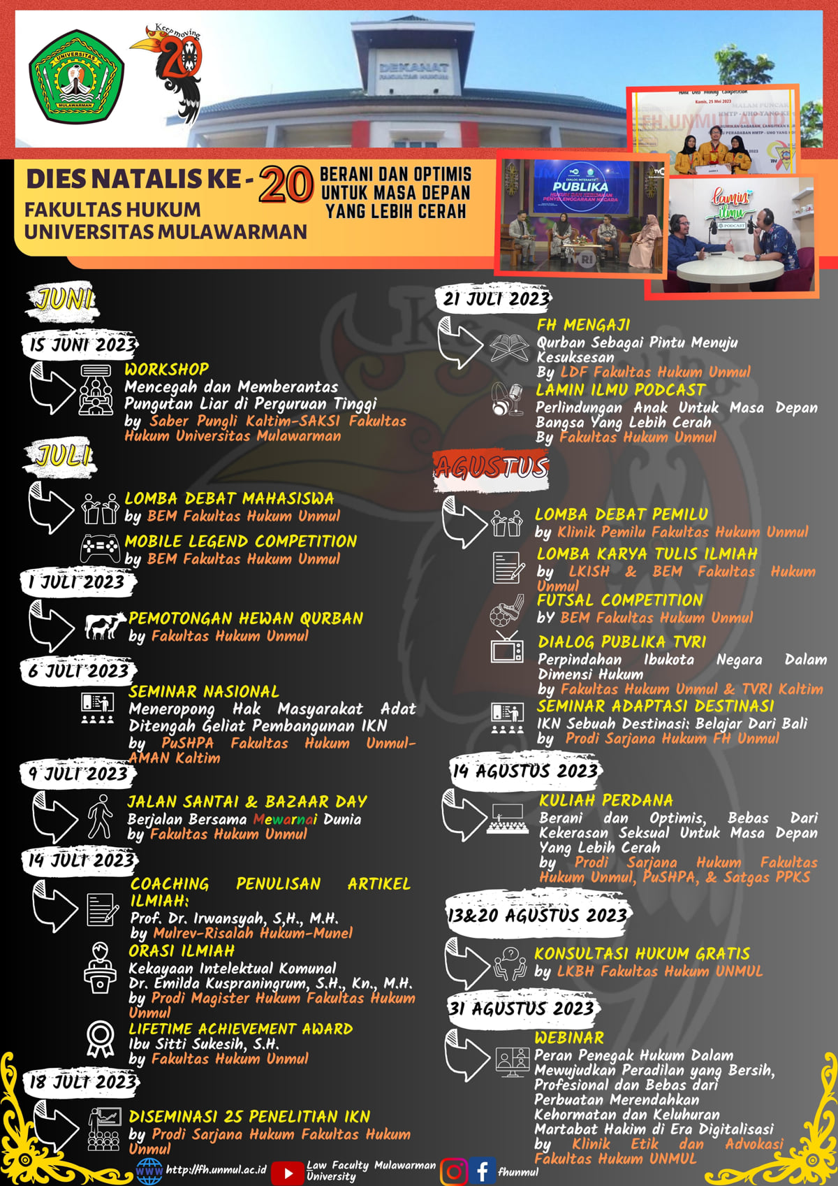 Dies Natalis Fakultas Hukum Universitas Mulawarman Ke-20 "Berani dan Optimis Untuk Masa Depan Cerah" 9 Juli 2003 - 9 Juli 2023