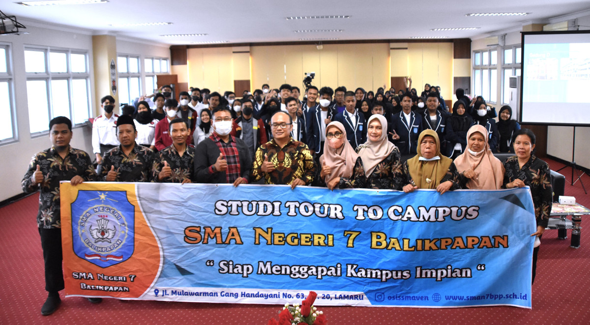 Senin, 12 September 2022 Fakultas Hukum Universitas Mulawarman menerima kunjungan belajar dari SMAN 7 Balikpapan di Gedung Aula B 304 Fakultas Hukum. Dihadiri sebanyak 96 orang siswa dan 8 guru pendamping yang disambut oleh Wakil Dekan Bidang Akademik, Kemahasiswaan, dan Alumni, Dr. Nur Arifudin, S.H., M.H. Seusai penyambutan, pihak SMAN 7 Balikpapan dan Fakultas Hukum saling bertukar cinderamata.
