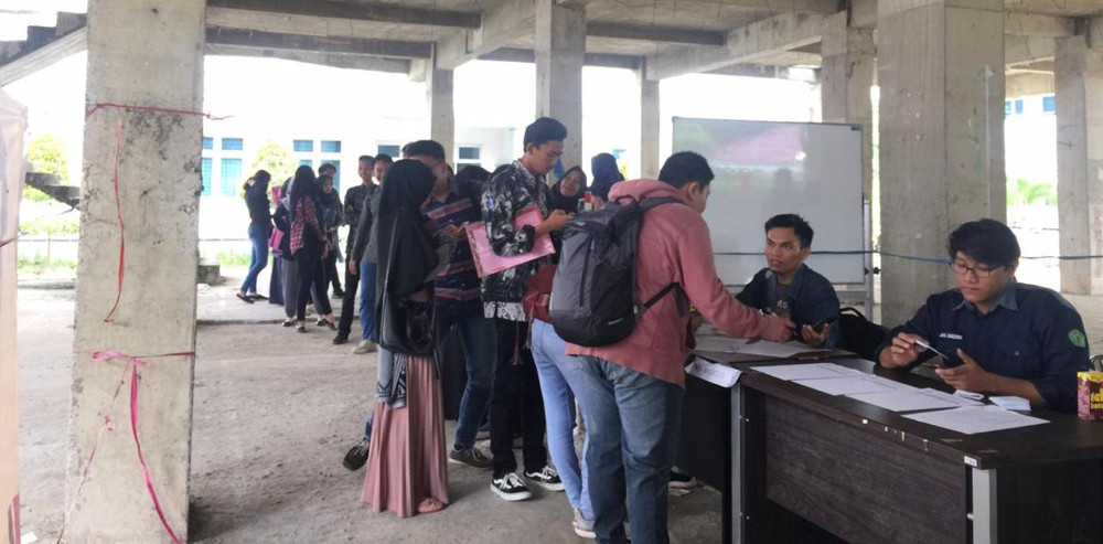 Foto 1: Sejumlah mahasiswa melakukan verifikasi data sebelum ikut melakukan pemilihan suara PEMIRA FH UNMUL 2019