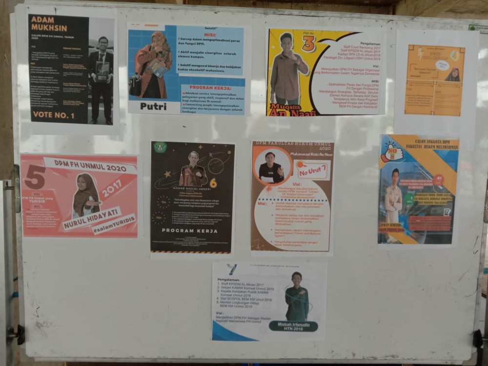 Foto 2: Papan tulis yang berisi informasi Calon DPM FH Unmul 2019
